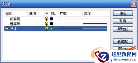 用图层来管理不同的线型。外框是细实线,内框是粗实线,尺寸是单独的线型。