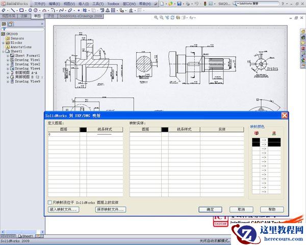 SolidWorks 软件可以把工程图很方便地转化成DXF或DWG格式,并且可以保存成多个的ACAD版本,这样可以帮助一些暂时只有ACAD软件的用户进行工程图的编辑修改。但是如果是简单的“另存为-DWG/DXF-确定”操作会带来一点的不方便:它所有的物体都是在同一图层上,这样会给进一步编辑带来麻烦。