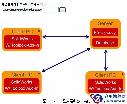 SolidWorks Toolbox可以在多用户环境中应用,在设置数据配置对话框中,单击“生成/更改”后可设置一个Toolbox的管理员密码,随后设置访问权限。