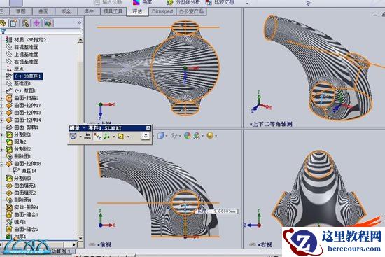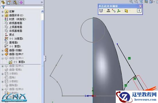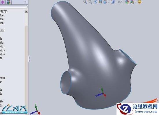 15利用删除实体,和删除面命令,删除多余曲面,效果如图所示,,下面就是曲面缝合
