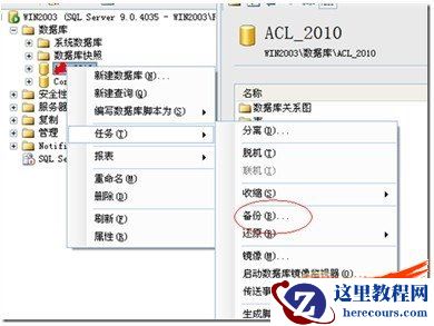 B: 选择要备份的数据库,然后点右键 任务 备份。