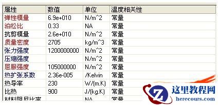 1.首先建立一个静态算例,对实体添加材料属性,添加材料为45号钢。其力学性能如下图所示: