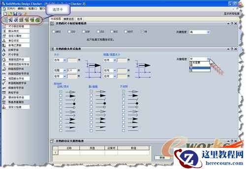 SolidWorks Design Checker 可以针对文档检查等7大类型共52项内容进行评估验证,如图2: