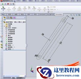 最初在SolidWorks草图中使用线代替零件,模拟滑块移动,求出滑块左右极限位置。确定主要的参数之后,插入新零件,命名此零件,然后将零部件保存成外部零件。然后配合零件的坐标系和总装图的坐标系,使之重合。