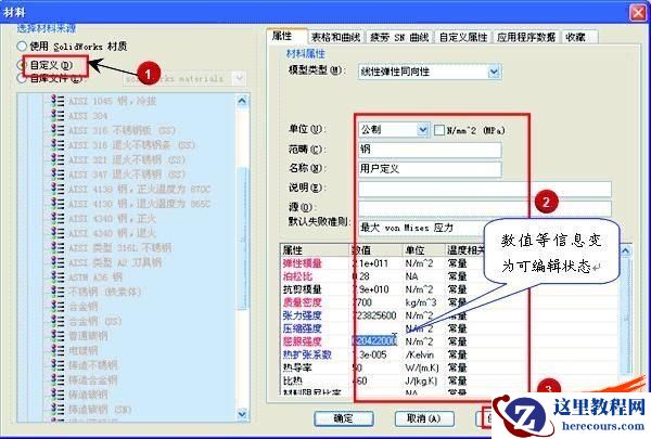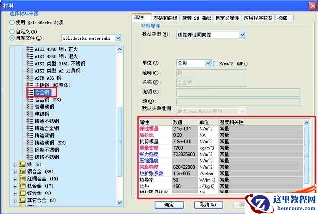 如果你所用的合金钢的性能参数与软件自带的有出入,需要修改的话,则可按下面的方法进行。