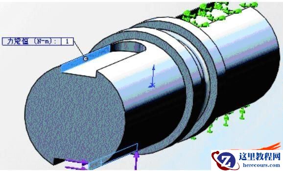 5)单击“外部载荷”按钮 下方的小三角,并单击 下级菜单中的“力矩”按钮