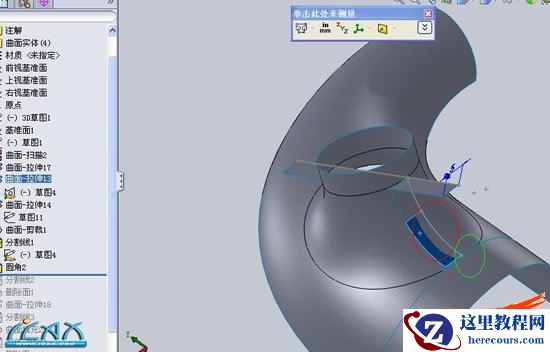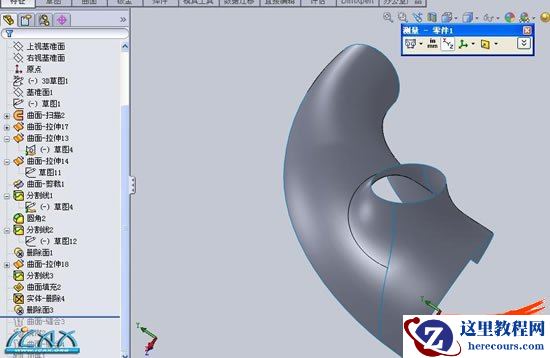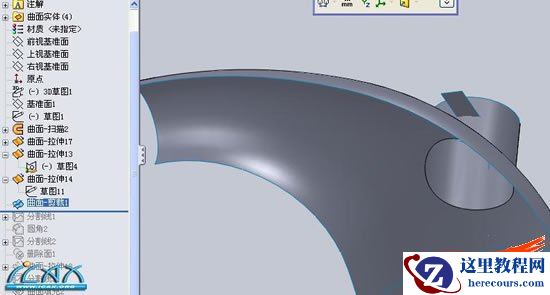 15利用删除实体,和删除面命令,删除多余曲面,效果如图所示,,下面就是曲面缝合