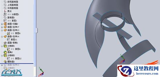 11,根据建立的分割线,删除多余曲面,