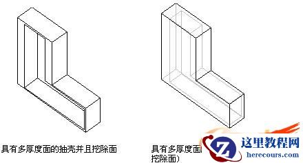 4、如果您要抽空模型并对模型的薄壁指定不同厚度,薄壁的抽壳特征,您可以将挖除面方框留为空白
