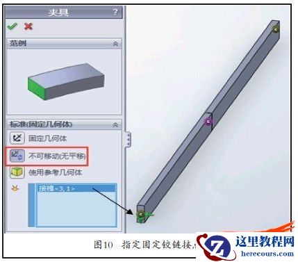 下方的小三角,并单击下级菜单中的“固定几何体”按钮,此时在左侧的特征树中出现对话框,选中“不可移动(无平移)”按钮