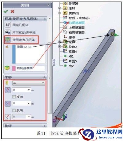 ,在图形区域单击图示接点(如图11所示),所选的接点出现在“铰接”