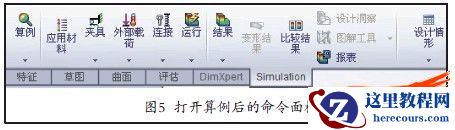 1 ) 启动“SolidWorks Simulation ” 插件,单击“S i m u l a t i o n”标签,切换到该插件的命令管理器页,如图2所示。