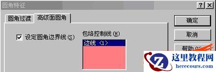 点击"高级面圆角"标签,选中:设定圆角边界线,并选择上图中的HODE LINE作为:包络控制线,点击确定。