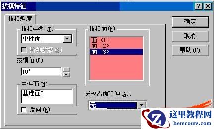 4、选择基准面3作为中性面,输入拔模角:10,按确定。