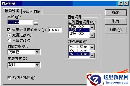 在弹出的对话框中,选中圆角类型为:便半径。