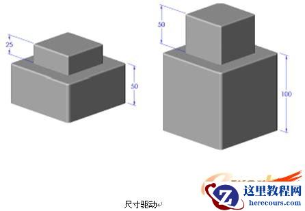 你可以给定各部分之间的尺寸和几何关系。在你保存图的时候,改变尺寸就会改变零件的大小和形状。例如,在下图中,上部总是底部的一半高。