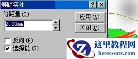 5、设置等距量为2mm,显示向外偏置。注意偏置方向,如果方向不正确,选中"反向"标签
