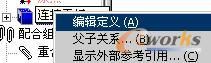 注意: 只有当项目有外部参考引用,即名称后跟有的 -> 时,此操作才能使用。本例中,part5<1>后面右一个"->"符号,图中不清楚