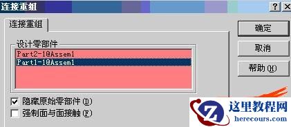 12. 如果您希望仅连接重组互相接触的零件,请单击强制面与面接触。