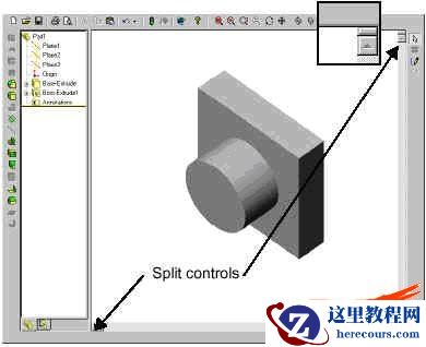 你最多可以在一个窗口中显示一个零件的四个不同的视图。这在你要选择一个零件的不同侧面的特征,或者你想同时看看同一模型不同侧面的操作效果时是非常有用的。