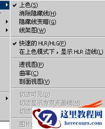 在显示工具条的模式按扭上单击来以线架图,隐藏线变灰,消除隐藏线 或 上色的方式显示零件。你也可以通过选择视图,显示改变显示的模式。