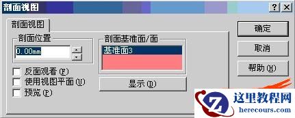 在任何时候你都可以显示一个模型的三维剖面视图。你利用模型的表面或平面来突出切平面。在这个例子中,你利用基准面3来作为剖切面。