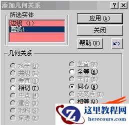 ②选择草绘的圆(小圆)和凸台的边缘(大圆)。注意Selected Entities对话框中的内容。
