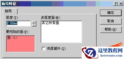 下一步,你做零件的抽壳。从选中的平面通过移走材料来抽空零件,留下一层薄壁的零件。