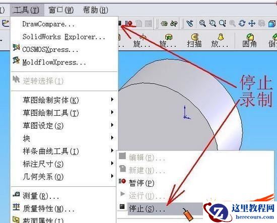 运行SW,如图的两种方法开始录制宏