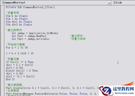 我们把刚才宏的所有代码先粘贴过来。通过命令的单词意思我们可以判断,前七句是用来创建新零件的,我们观察第6句,发现这种创建方法与SW的安装位置有关联,所以我们使用下面三句通用的创建零件方法来替代这些代码(忘了是哪位大侠教给笨笨的了,抱歉)。