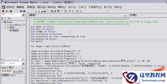 因为SW整合了VB编辑器(比较像VB6.0),这个编辑器又可以进行宏与二次开发的制作。使用宏的建立来打好基础框架,以简化开发过程。用这种录制宏的方法也可以快速得到SW的操作命令,这比检索全英文的API文档方便。 目的:使用简单实例,向新手讲述最基本的二次开发步骤,让没用过二次开发的朋友能够迅速上手。本文需要VB6的基础技术,能看懂VB6程序代码,会写基本程序就行。