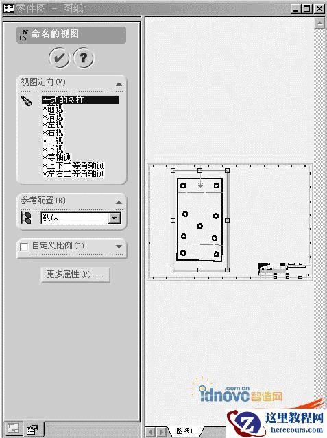 4.3单击插入→工程视图→命名视图,在PropertyManager中选取平坦图样,将视图移动到图纸范围的适当位置,完成工程图,如图8所示。