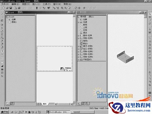4.2单击窗口→纵向平铺,将工程图文件和钣金文件同列于视窗如图7所示。
