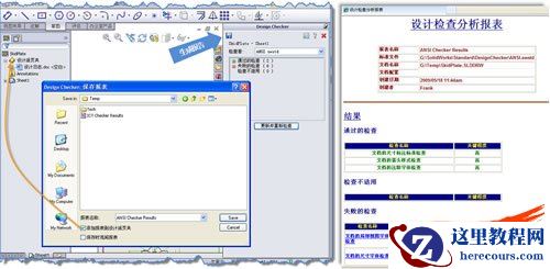报告以 .xml 格式保存结果。报告列出用来评估文档的标准准则,包括已通过和未通过的检查,并可将报告直接添加到当前SolidWorks文件的设计活页夹。