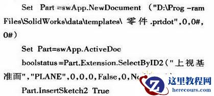 SolidWorks二次开发中最重要的是程序的编写。由于SolidWorks API函数繁多,函数功能较大,因此,一个简单实用的方法是先录制用户执行的操作即录制宏.获得宏操作代码,将其复制到VB环境下程序所需部分,然后编辑修改以达到程序要求。