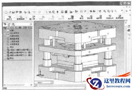 模具装配有三种方法:一是利用选择和遍历技术选中零件上带有所需要特征的表面进行配合;二是利用零件的参考几何体进行配合;三是利用坐标直接选中所需要的零件表面进行配合。三种方法各有利弊,例如,第一种方法是最可靠的,但也是程序最复杂的。实际编程中应根据情况的不同进行选择。程序运行结果如图3所示。