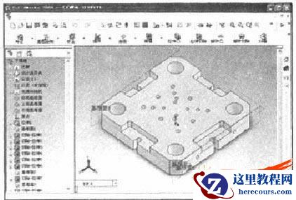 程序运行时,首先链接Access和程序界面的文本框,为变量赋值。然后在内部自动执行编译好的程序,无需人工干预,即可实现模型的建立和更新。值得注意的是,模型中零件的空间放置情形应尽量与实际的情形相一致,以便于零件的装配。以下模座为例,程序运行结果如图2所示。