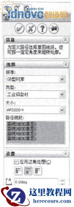 在SolidWorks中运用上面生成的铝型材截面,和使用SolidWorks自带的型材库步骤相同,只需按照如下步骤操作即可。