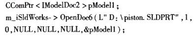 其中D:piston.SLDPRT为模板文件的储存目录,模板文件打开后弹出对话框,用户输入尺寸参数,点击确定,程序将用户输入的参数通过对话框中的变量传递至尺寸变量: