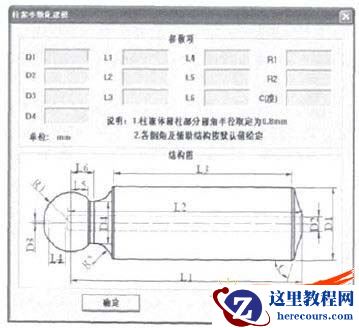 新建柱塞参数化建模对话框如图4所示,并添加输入数据编辑框。打开ClassWizard,创建新的对话框类,添加成员变量,将各尺寸输入编辑框赋予变量名称。如将D1编辑框添加为double类刑的变量m—D1。