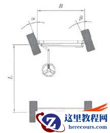 为了避免汽车转向时产生的附加阻力过大和轮胎磨损太快,要求转向系在汽车转向时,所有车轮均做纯滚动而不产生侧向滑移,图l中两侧车轮偏转角α和β的理想关系为