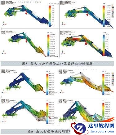 通过motion动力学仿真,可以适时地分析各工况的受力情况,确定各部件出现危险工况的位置。本文在此基础上利用Simulation软件进行了工作装置整体静力学与模态的分析。