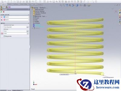 最简单的弹簧画法莫过截面沿直线旋转扫描而出,具体方法如下: