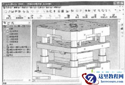 模具装配有三种方法:一是利用选择和遍历技术选中零件上带有所需要特征的表面进行配合;二是利用零件的参考几何体进行配合;三是利用坐标直接选中所需要的零件表面进行配合。三种方法各有利弊,例如,第一种方法是最可靠的,但也是程序最复杂的。实际编程中应根据情况的不同进行选择。程序运行结果如图3所示。
