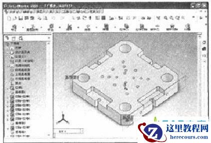 程序运行时,首先链接Access和程序界面的文本框,为变量赋值。然后在内部自动执行编译好的程序,无需人工干预,即可实现模型的建立和更新。值得注意的是,模型中零件的空间放置情形应尽量与实际的情形相一致,以便于零件的装配。以下模座为例,程序运行结果如图2所示。