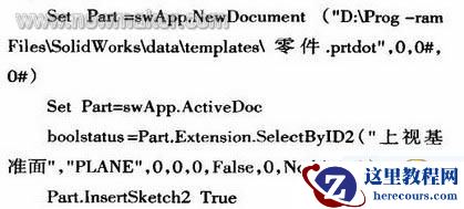 SolidWorks二次开发中最重要的是程序的编写。由于SolidWorks API函数繁多,函数功能较大,因此,一个简单实用的方法是先录制用户执行的操作即录制宏.获得宏操作代码,将其复制到VB环境下程序所需部分,然后编辑修改以达到程序要求。