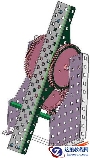 参考几何体(例如平面、轴和坐标系)有助于创建特征和装配部件。方形 VEX 轴与圆柱形齿轮装配在一起,在 VEX 轴中心插入一个参考轴后,即可使方形部件与圆柱形部件同心配合。在齿轮中心插入一个参考平面,即可定位轮齿中心,从而在装配体中对齐多个齿轮。