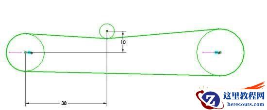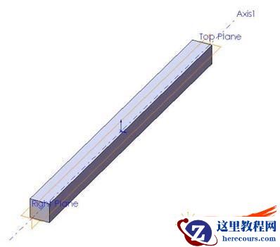 创建对称特征可节省以后建立特征以及形成装配体的时间。例如,您可通过使用对称关系并指定距离来将齿轮灵活地定位在 VEX 轴的中部或端部。若要为设计中的这种未来行为作准备,最好使 VEX 轴关于草图平面对称。Extrude Boss/Base(拉伸凸台/基体)特征中的 Mid Plane(中面)选项用于将 2D 草图垂直于草图平面并在两侧伸出相等的距离。