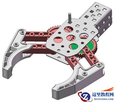 设计表格可用于创建具有相似特征和属性的多种版本的零件组。VEX 轴会加工成三种尺寸:2 英寸、3 英寸和 4 英寸。通过设计表格控制大小尺寸,您只需创建零件一次即可。因为 SolidWorks 是一种 OLE/2 应用程序,所以它使用 Microsoft Excel® 电子表格来编排设计表格,这些表格可导入到 SolidWorks 文档中。设计表格可包括更多值,例如颜色、零件号、描述、标记、材料、质量和其它由用户定义的属性。在装配体中,您可使用设计表格来创建模型的各种变体,还可以使用配置来控制开合位置,例如控制此机械爪的爪子的开合。
