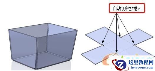 根据左边的编辑器的设定,设置折弯的参数,选定固定面、切口边线和释放槽,就可以得到如图3的钣金零件。